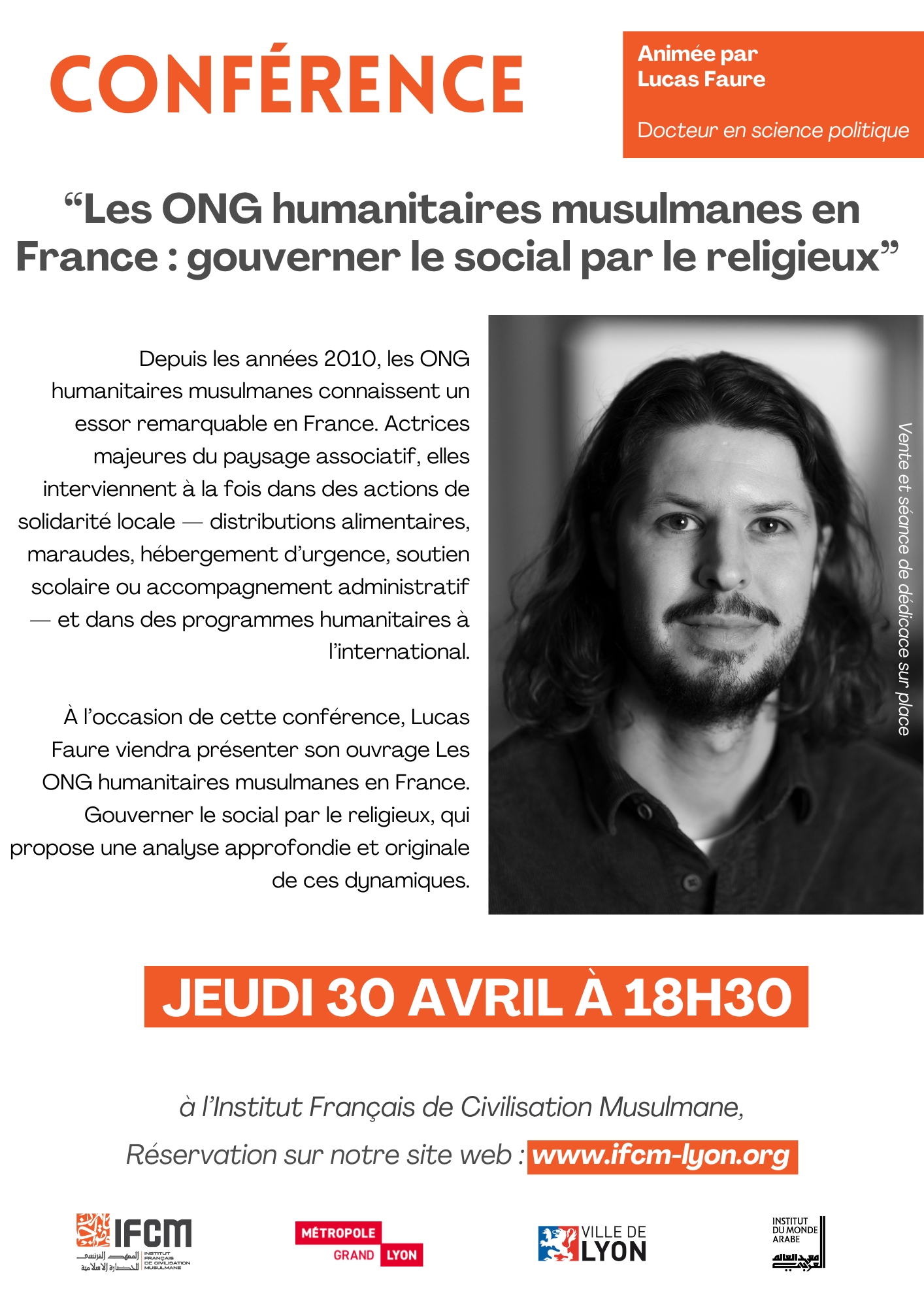 Institut Français de Civilisation Musulmane 52 rue Guillaume Paradin, Lyon, Rhône, FranceUne plongée inédite dans l’humanitaire musulman en France Depuis les années 2010, les ONG humanitaires musulmanes connaissent un essor remarquable en France. Actrices majeures du paysage associatif, elles interviennent à […]